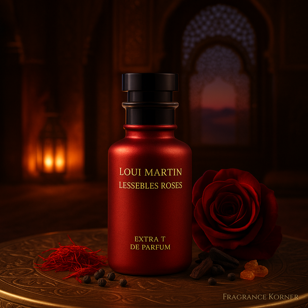 Découvrez Lessebles Roses, une création olfactive luxueuse de Loui Martin, disponible exclusivement chez Dupe Univers.